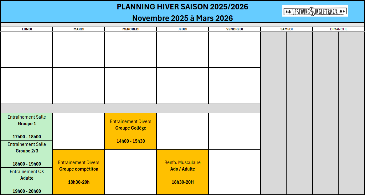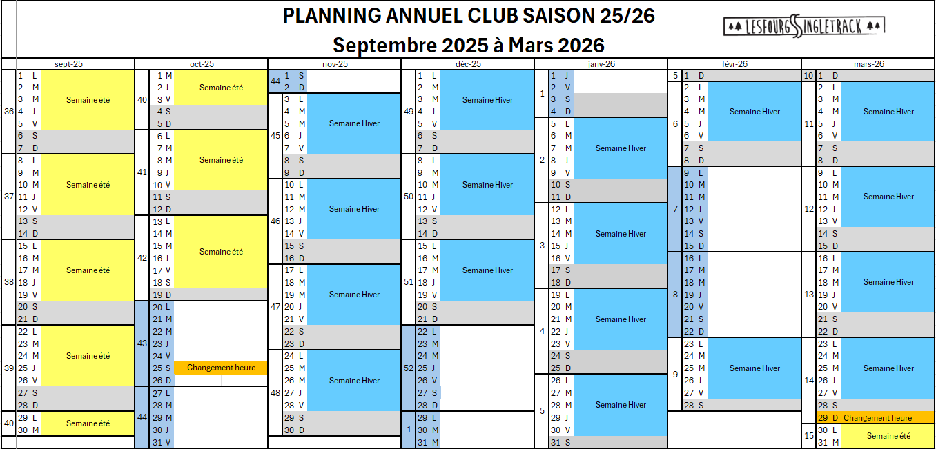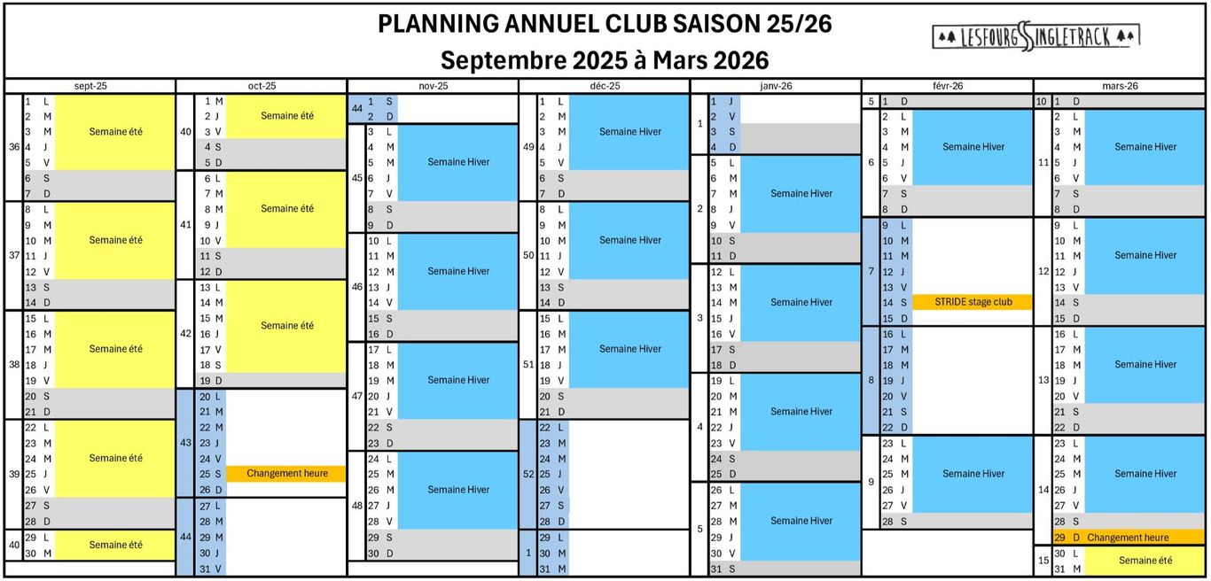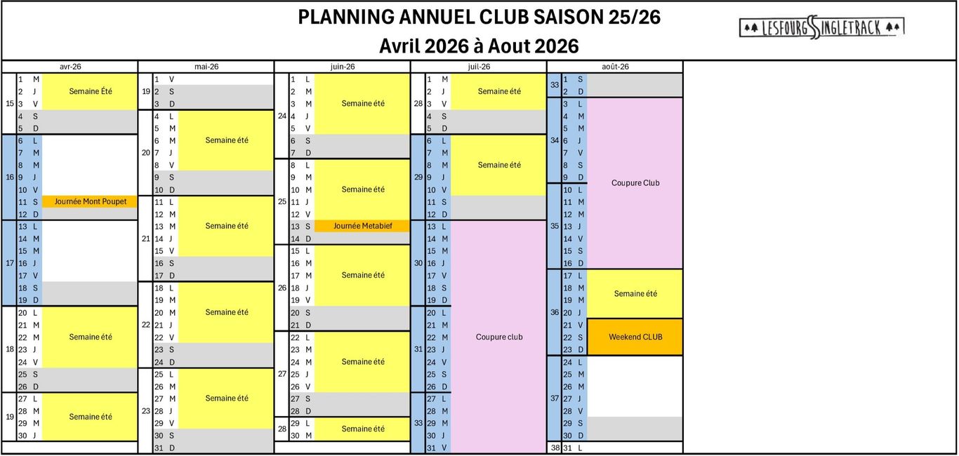 • Le planning annuel du club avec les evénements clefs et les courses BFC.
